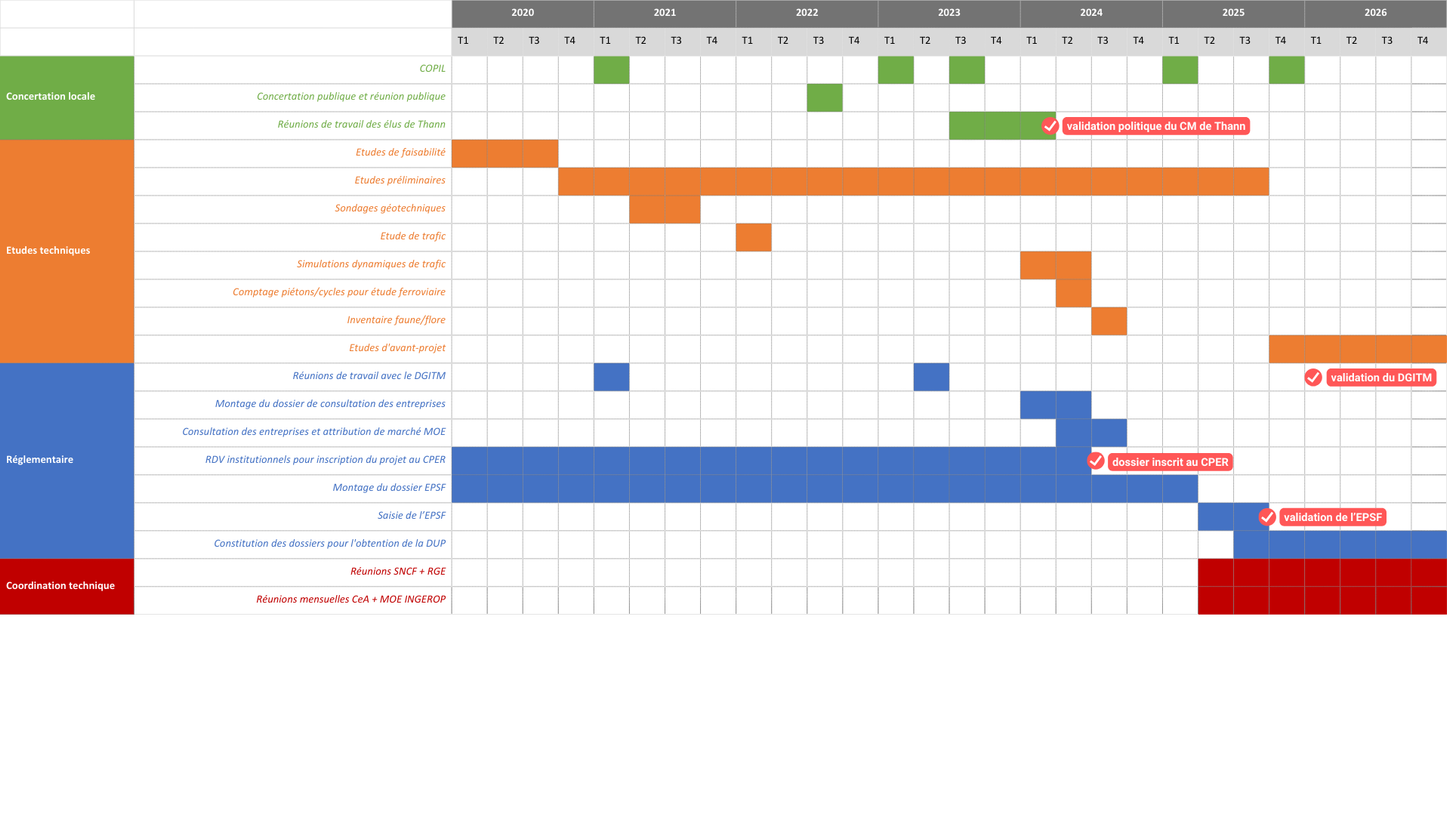 - – Une étude « Amont-Agile » a été réalisée par SNCF Réseaux pour estimer un coût et les délais nécessaires pour la réalisation des études ferroviaires liées au projet (dépose / repose de ligne)